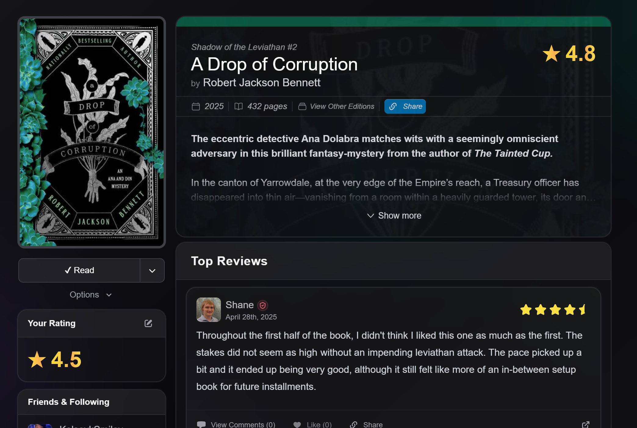 Stay connected with your reading community. See reviews, shelf updates, and reading progress from friends and authors you follow. Share your own thoughts and updates through text posts, react to reviews, and comment on activity. Discover what books are resonating with people whose taste you trust. Follow readers with similar interests or favorite authors to build a feed that reflects your reading preferences.
